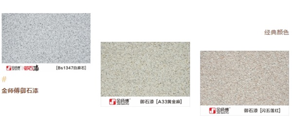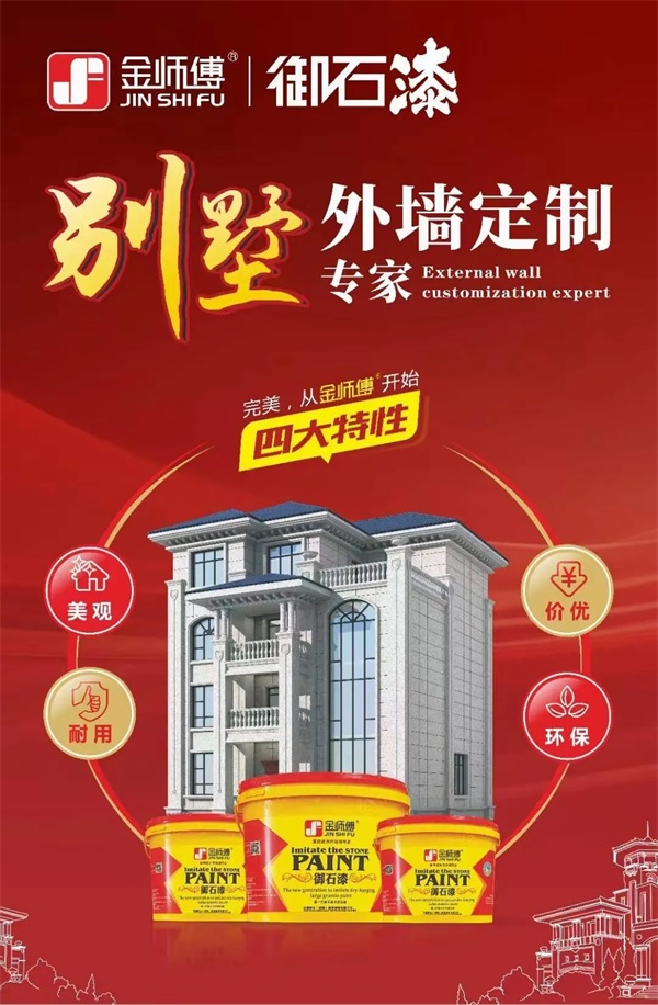 金師傅品牌始終以嚴謹?shù)目茖W態(tài)度不斷探索求新,緊趨世界新型外墻建筑材料的發(fā)展方向,充分發(fā)揮深耕涂料建材行業(yè)二十載的優(yōu)勢,大力發(fā)展仿石涂料系列。